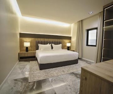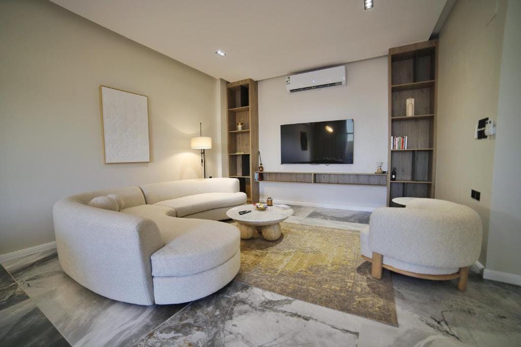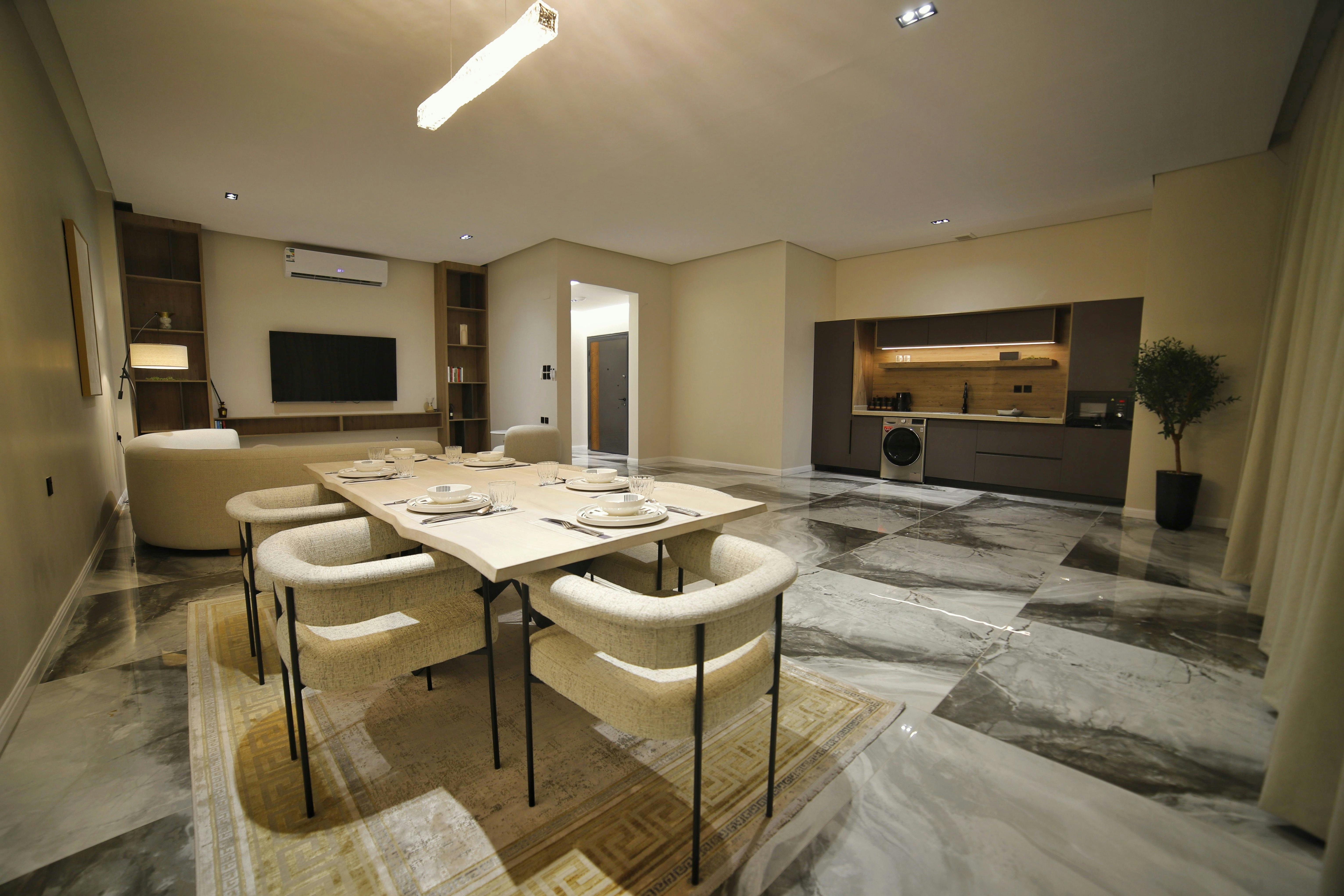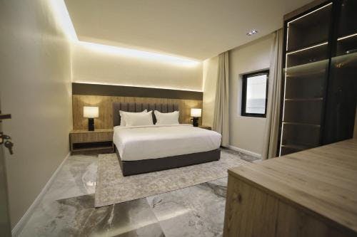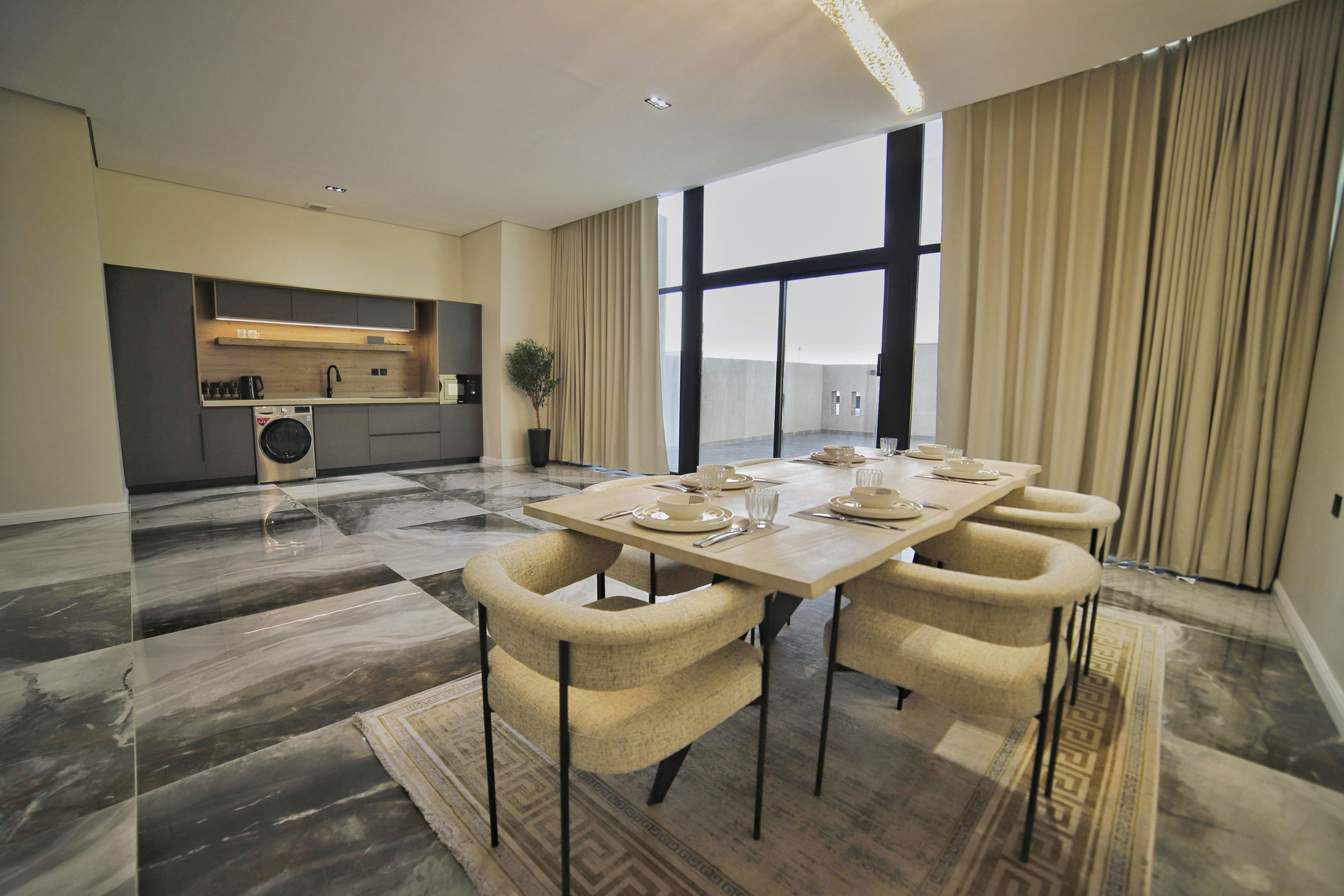 Experience unparalleled comfort in our Luxury Suite, designed for those who appreciate elegance and sophistication. This suite features a spacious bedroom, a stylish living room, and a dining table for added convenience. The fully equipped kitchen allows for easy meal preparation, while the private terrace offers a serene outdoor space to relax and enjoy the view. For added convenience, the suite includes an automatic washing machine with a dryer, making it perfect for extended stays. With modern amenities and a refined ambiance, this suite ensures a luxurious and hassle-free experience.